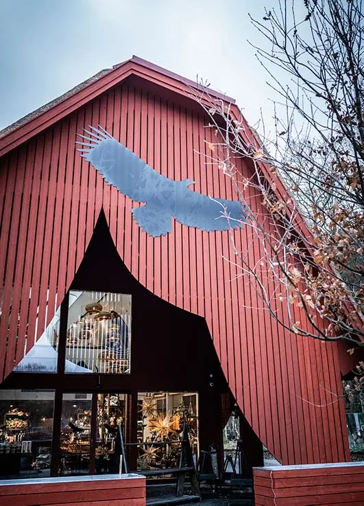 När det nya entréhuset/gårdsbutiken skulle ritas fick arkitekten Thomas Sandell uppdraget att skapa den 400 kvadratmeter stora byggnaden, i två plan. Inspirerad av en röd lada med vasstak är huset en publikdragare i sig, vilket är själva tanken.