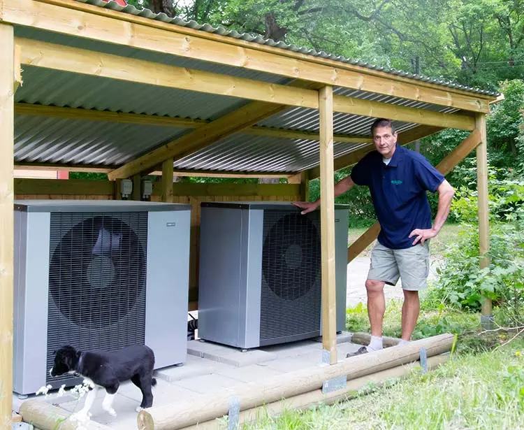 – Eftersom jag har så god tillgång till ved var jag sugen på att få det att funka ihop med värmepumpar. Eftersom luft/vatten är så effektivt idag blev det mitt val och faktum är att jag bara behöver elda när det blir minusgrader. Den nya teknikens värmepumpar är väldigt bra och jag får höga vattentemperaturer från värmepumparna och systemet har fungerat perfekt den första vintern, säger Christoffer Nathanson, ägare av Sunds Gård på Värmdö.